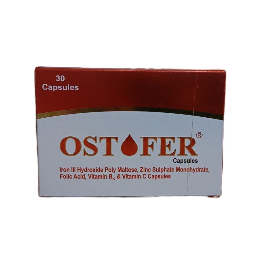 Ostofer Capsules contain Iron III Hydroxide Poly Maltose, Zinc Sulphate Monohydrate, folic acid, vitamin B12 and vitamin C which helps to meet extra need of these vitamins and minerals especially in pregnancy or when planning for pregnancy.